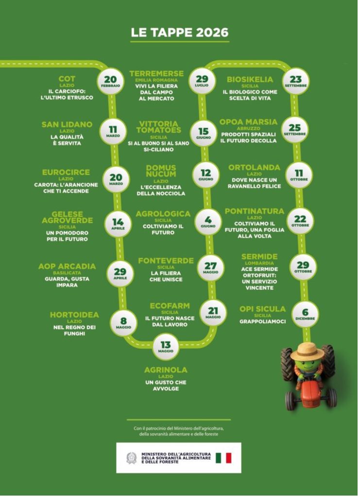 Il progetto, in costante crescita, coinvolgerà nel 2026 ben 19 Organizzazioni di Produttori distribuite su larga parte del territorio nazionale, dalla Lombardia alla Sicilia, passando per l’Emilia-Romagna il Lazio, Abruzzo, e la Basilicata, in un viaggio alla scoperta delle O.P. e all’insegna del confronto tra i vari soggetti coinvolti nella filiera.